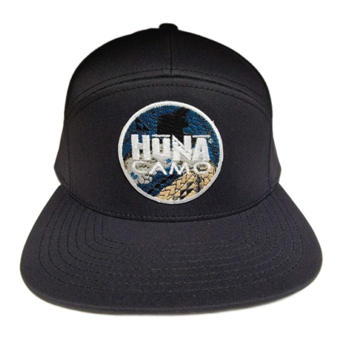 7-paneled water resistant hat with Huna Camo Makai Patch. Snap back. Suitable for the field to everyday wear. One size fits most.