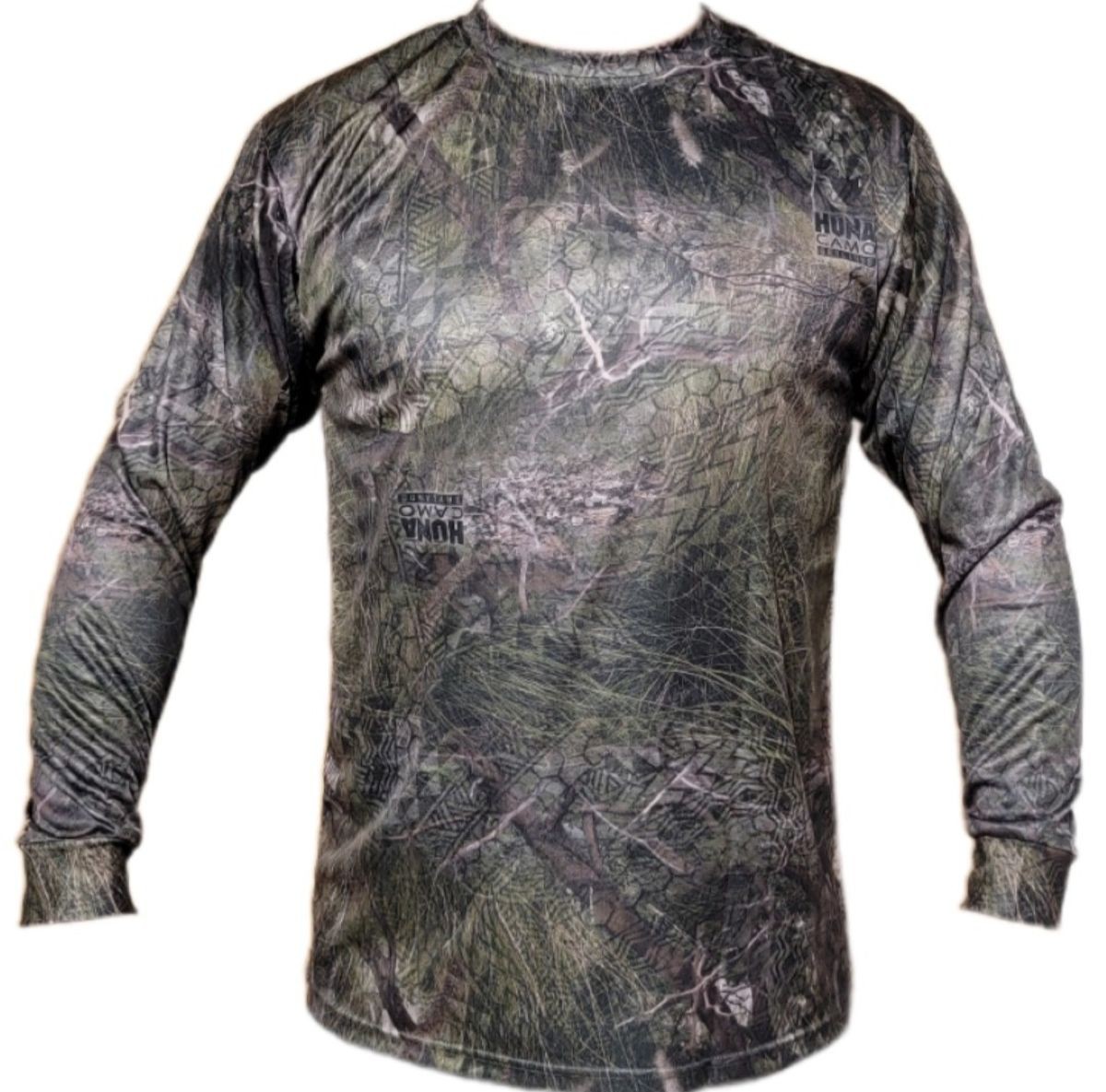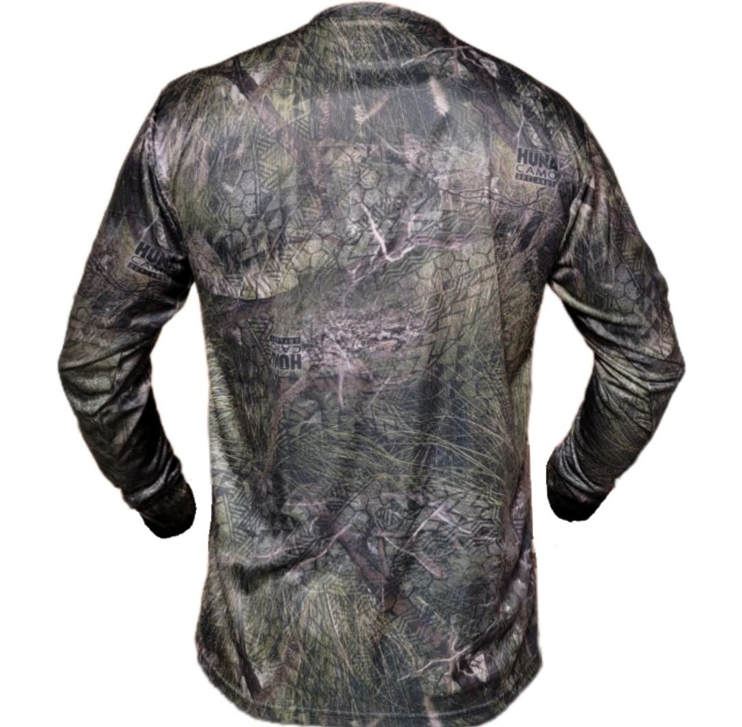 Featuring our proprietary Huna Camo Drylands camouflage pattern. Made of lightweight 130gsm high-wicking and breathable polyester , spandex fabric. Designed with a relaxed contour to keep you cool and comfortable. True to size