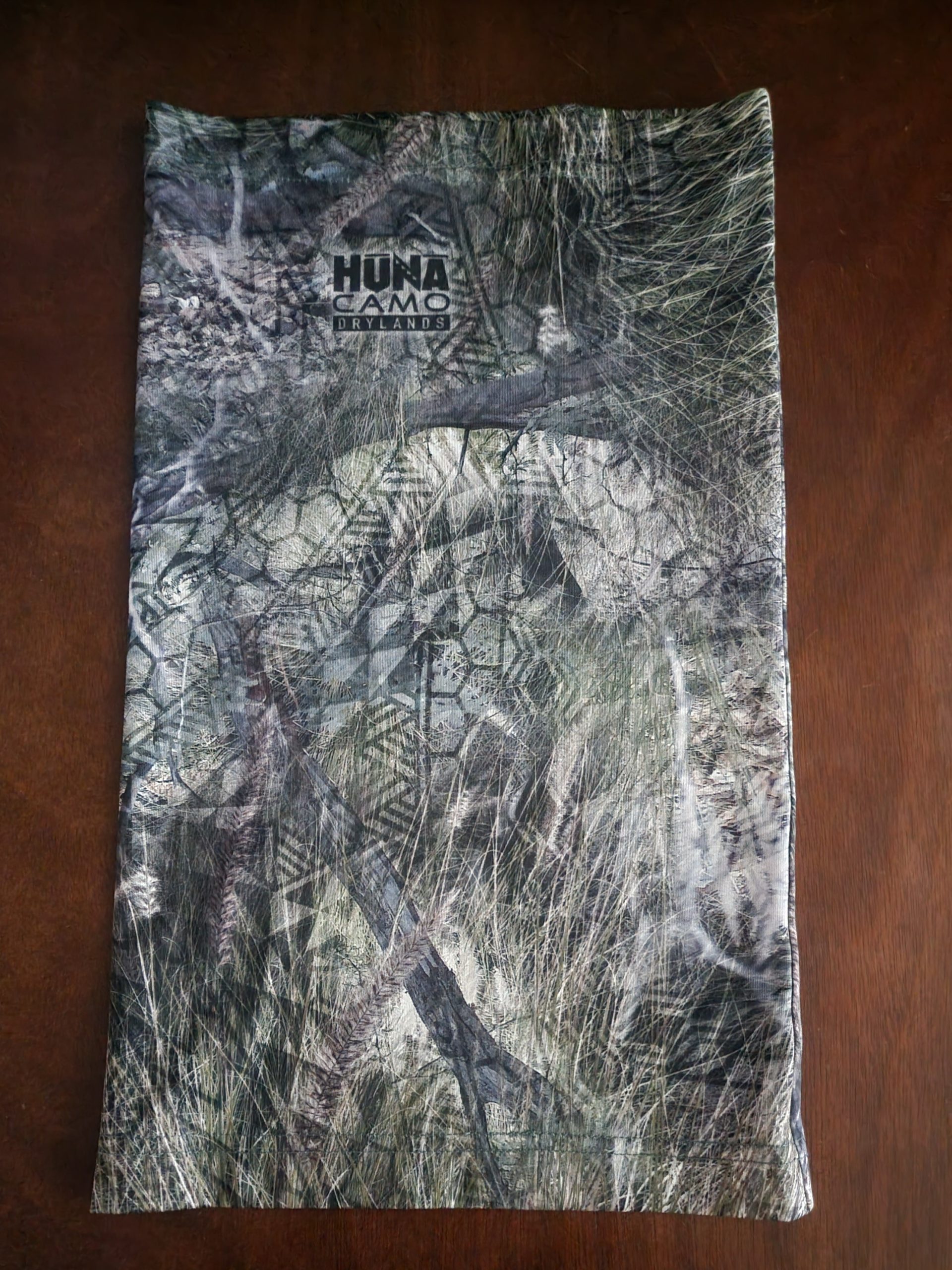 Featuring our proprietary Huna Camo Drylands camouflage pattern. Made with lightweight 200gsm 2-way stretch polyester. One size fits most.