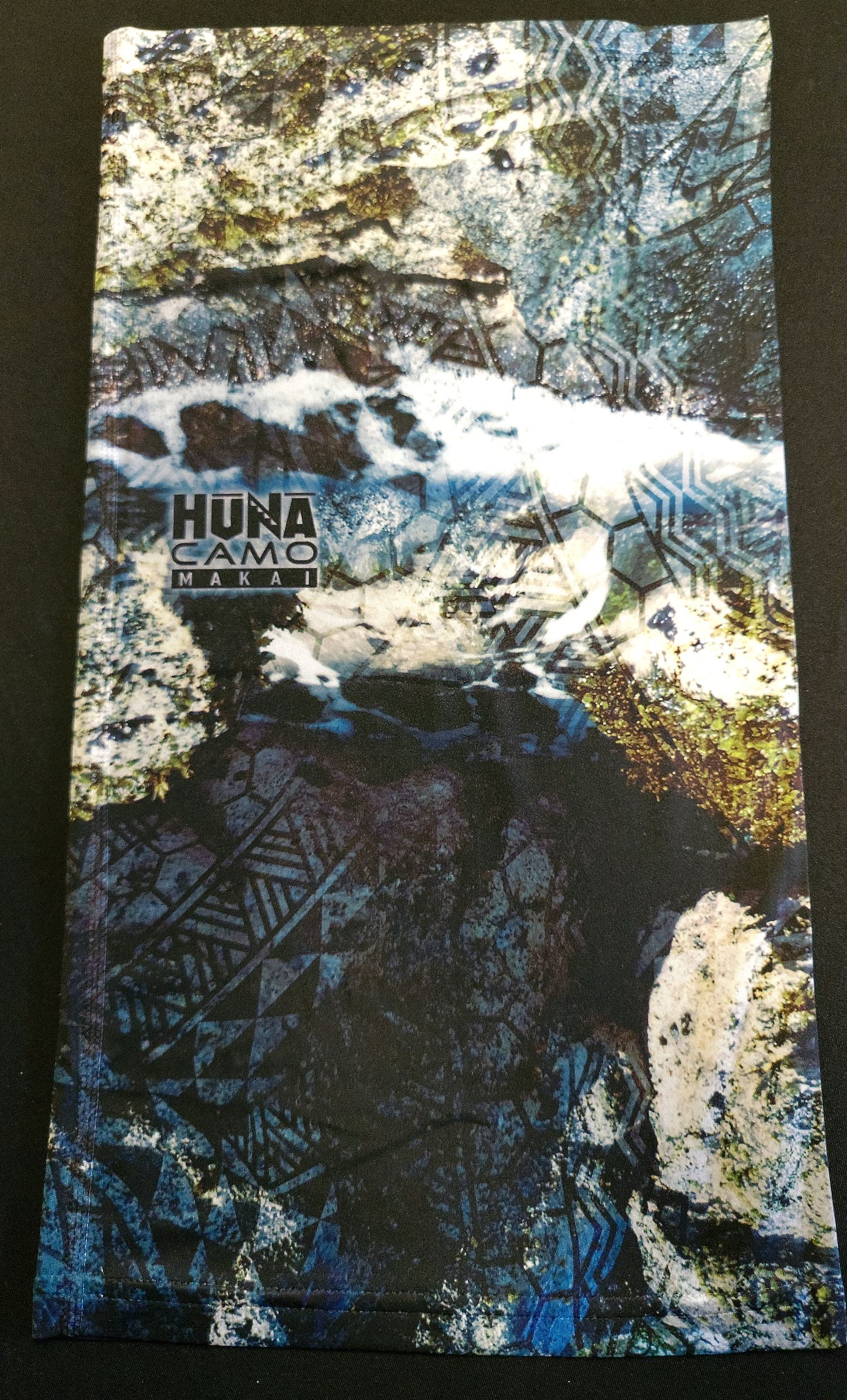 Featuring our proprietary Huna Camo Makai camouflage pattern. Made with lightweight 200gsm 2-way stretch polyester. One size fits most.